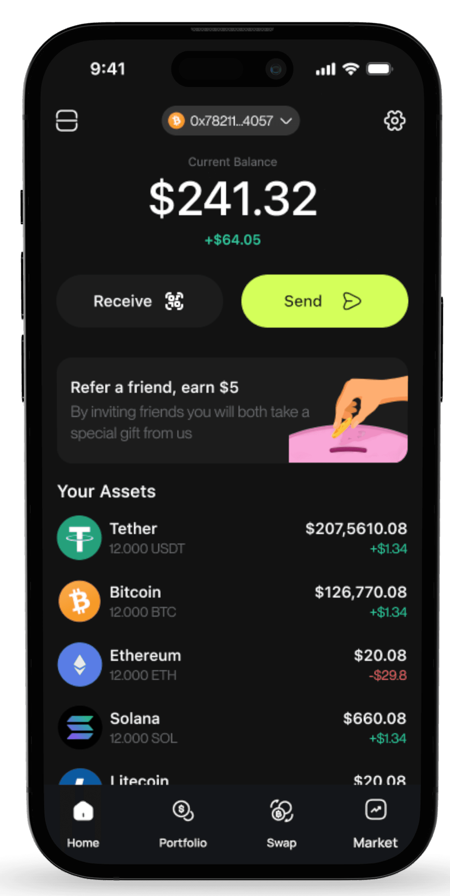 Add assets, view holdings, or send funds instantly without needing multiple apps or complicated steps.